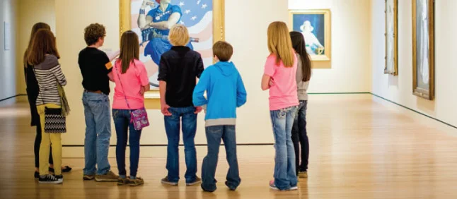 Life-long learners are fearless in the face of things they don’t understand; they approach with curiosity. To come up with questions about art, students must recognize and explore what they can’t figure out based on prior knowledge or available information. One great student activity is to list questions that have “no answer clues” in an image; “can you stump us all?” “Why is the chicken wearing jeans in this picture?” “I write from left to right; why does the artist paint the letters all mixed together?” “I see boxes like this every day; why is this one in a museum?”